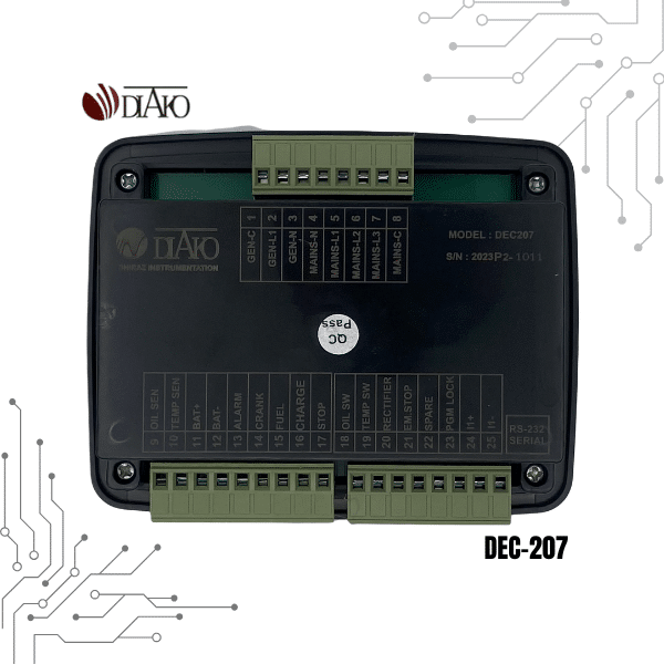برد کنترل DIAKO 307 دیزل ژنراتور متناسب برای کاربردهای برق اضطرای و نمونه گیری سه فاز از برق شهر و نمونه گیری سه فاز از برق ژنراتور و نمونه گیری سه فاز از جریان ژنراتور می باشد.این برد میتواند ولتاژ برق شهر را اندازه گیری و نمایش دهد و همچنین دما و فشار روغن، ساعت کارکرد موتور و ولتاژ باطری را اندازه گیری کند.